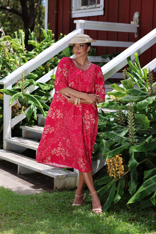 Makanoe Dress Cranberry Kukui Blossom