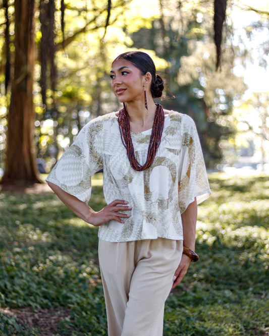 This cute baby doll blouse has a unique silhouette that adds a touch of charm to any outfit. Pair it with solid pants or a skirt for a complete, stylish look. Perfect for any occasion, this blouse is a must-have for your wardrobe.